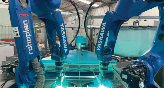 For the welding process, two Yaskawa Motoman robots model MA1440 were used, controlled by the DX200 controller, mounted on two pedestals and the respective MIG / MAG welding equipment. These hollow-arm robots are characterized by their versatility in terms of connection to the welding equipment and their form of construction, which allow them to offer the best performance, regardless of the brand of welding equipment to be used.