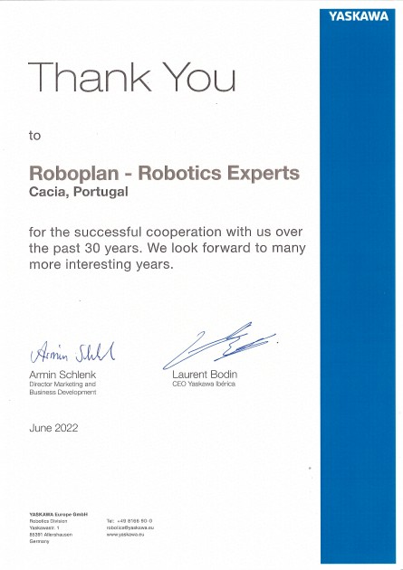 Roboplan, representative for Portugal of Yaskawa, the world's leading Japanese brand in the robotics sector and known for its high quality standards, celebrates this year the brand's 30 years of presence in Portugal.