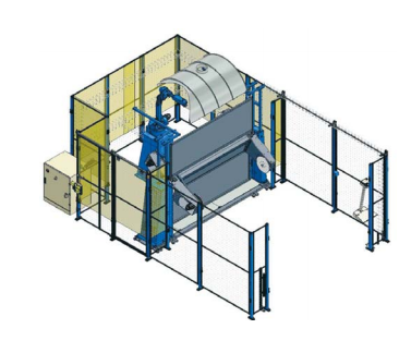 The robot choice is flexible depending on the application and there is a choice of safety system depending on customer requirements and available floor space. This may comprise a light guard system or an automatic roller shutter door in case of optimum floor space utilisation.