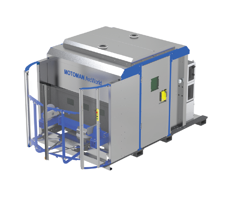 In the standard version, it consists of a 6-axis MOTOMAN-AR1440 industrial robot (may have twin robots), a two-station positioner with payload of 500 kg per station, a controller and power supply, all mounted on a common platform. Workpieces can also be loaded and unloaded with an inner crane. Easy to install and ready for offline programming, ArcWorld CS offers a practical, accessible and bright environment for the robot and the operator.