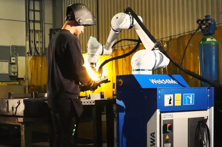 Weld4Me is a mobile robotic station, equipped with an HC10 collaborative robot, a YRC1000 compact controller and the respective welding equipment that can complement manual MIG/MAG welding.