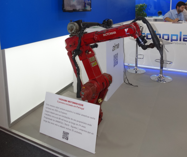 Em 1992 este robô Motoman K6 SB esteve em exposição neste certame. Daqui saiu diretamente para as instalações do nosso cliente Jamarcol onde contabilizou cerca de 80.000 horas de trabalho, ao longo de 24 anos, com uma aplicação de soldadura por arco de componentes para veículos motorizados.